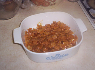 I modified since it was just for me and Jon, but I didn't modify correctly (blame it on a sore neck and not me being a complete doofus). I used the full amount of peanut butter and butter, then cut the cereal and marshmallows.